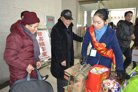 在2011年春运农民工平安返乡返岗安全优质服务竞赛活动中,她们克服恶劣天气影响,主动延长服务时间,为返乡和外出务工旅客增加了开水供应、行李搬运设备,为有低血糖、晕车等症状的旅客准备了白糖,还免费提供姜汤、取暖和各个车站的班次信息咨询等服务项目。针对农民工兄弟的心理特点,她们创造出“笑融融、轻声问、得信任、再帮衬”的服务模式,在春运中大放异彩。
