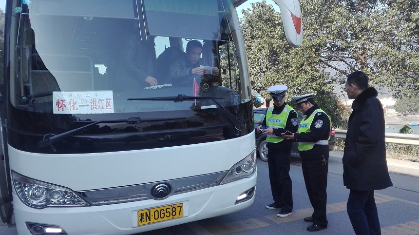 12月20日晨,北风呼啸,寒风凛冽,为确保车辆低温天气运行安全,不顾零下1度的寒冷,我司经理助理龙佩廷带领站、队相关人员与区交警队客运办人员一起在横岩段开展了一次警民联合路检路查行动,重点检查了逃生锤、灭火器、防滑链等随车安全设施设备,安全宣传视频、五不两确保承诺及旅客安全带佩戴情况,提示驾驶员遇桥梁、风口、积水等易结冰地段时要做好防范措施,低速谨慎通过,此次警民联合路查行动共上车检查过往客运车辆20余台次,消除安全隐患1起,效果良好,意义重大。双方领导当场表示要建立联合路查长效机制,共保旅客平安。