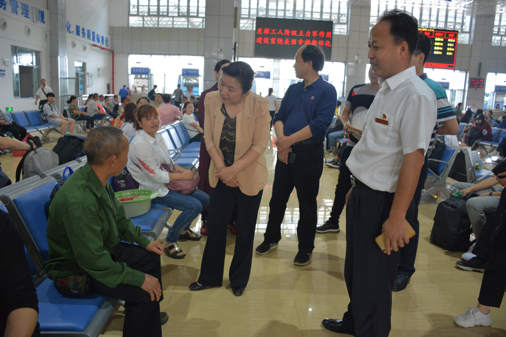 5月24日上午,怀化市委常委、宣传部部长张霞在市文明办领导、市创卫办领导的陪同下,来到怀化综合枢纽客运站检查指导文明创建的相关工作。
