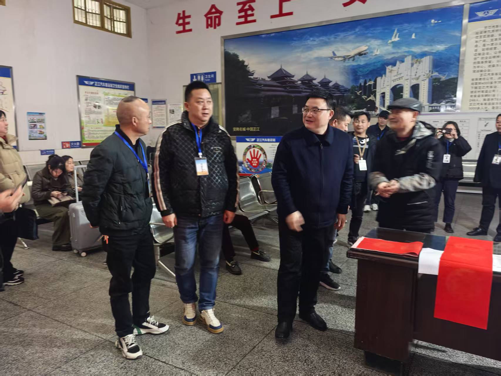 2025年1月23日上午9:30分,集团公司党委书记、董事长唐龙携党群人事部、运输业务部、安全保稽部等一行4人到芷江分公司督导检查春运生产工作落实情况,在检查过程中对在车站组织开展 “廉润万家和和美美”“清廉文化进车站”活动的相关人员热情握手,并送上新年的祝福。