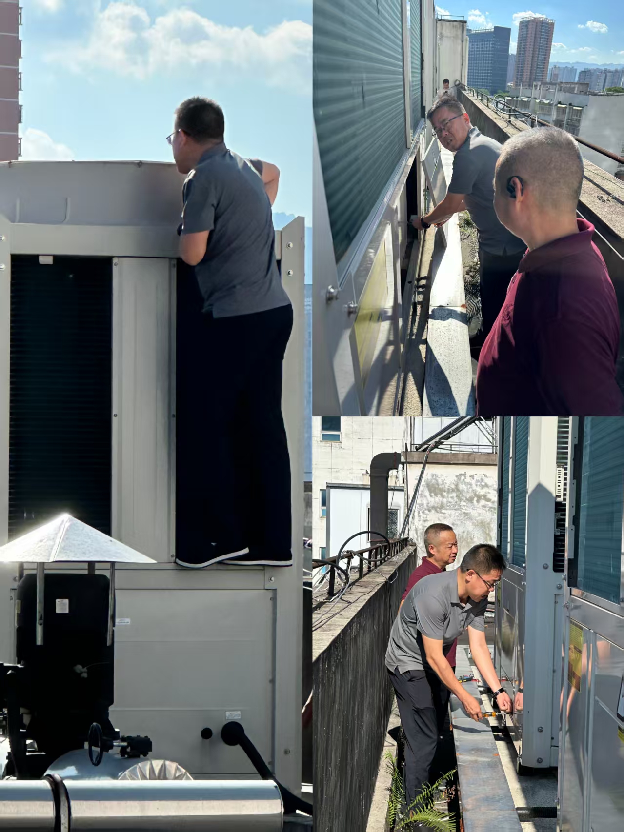 针对部分办公室制冷效果不佳问题,技术人员专项排查,定位出滤网堵塞、管道轻微漏氟等原因,经清洗、补氟及密封修复,制冷效果恢复正常。