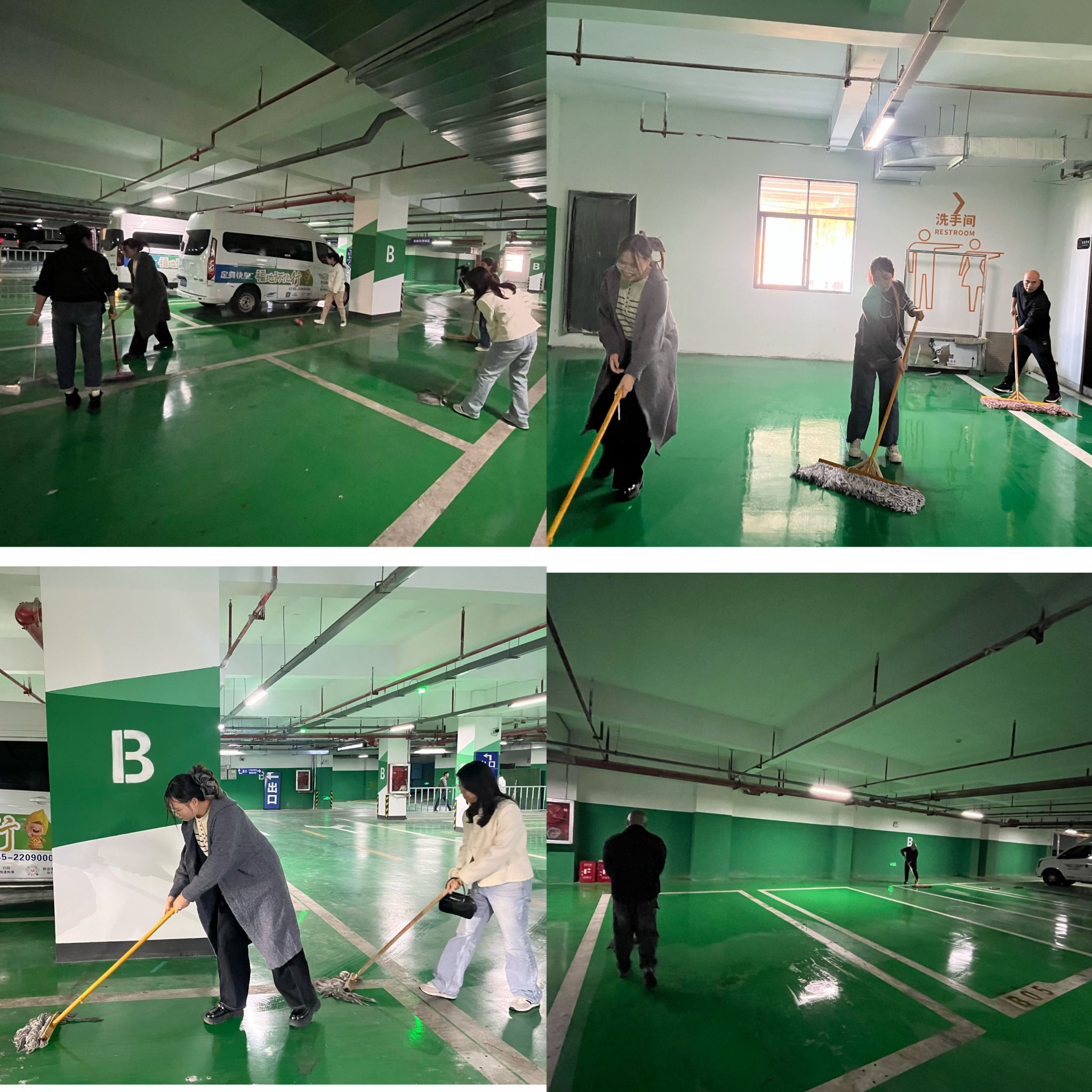 活动现场,参与的人员分工明确、各司其职,迅速投入清洁工作。大家重点对驿站负二楼定制快车停车场进行全面清扫,手持扫帚、垃圾袋等工具,仔细清理地面散落的果皮、纸屑、塑料杂物等各类垃圾,不放过任何卫生死角。党员同志带头冲锋在前,其他人员主动跟进配合,不怕脏、不怕累,默契协作完成垃圾清运、地面除尘等工作,用汗水为旅客打造整洁有序的乘车环境。