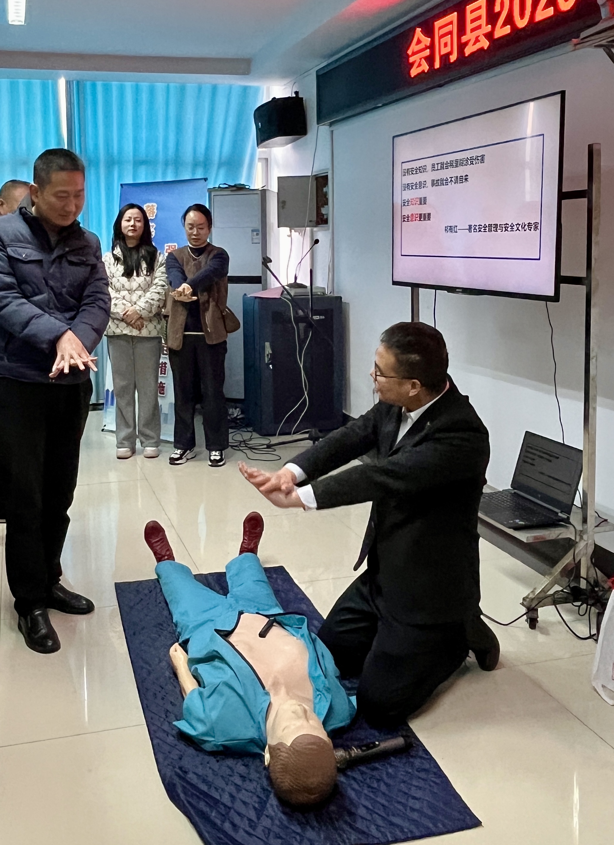 同时,培训巧设触电防护小游戏,以趣味形式普及用电安全常识,同步开展急救演练,专家手把手指导心肺复苏、伤口包扎等操作,还组织设备安全操作等实操训练,推动理论知识转化为应急技能。