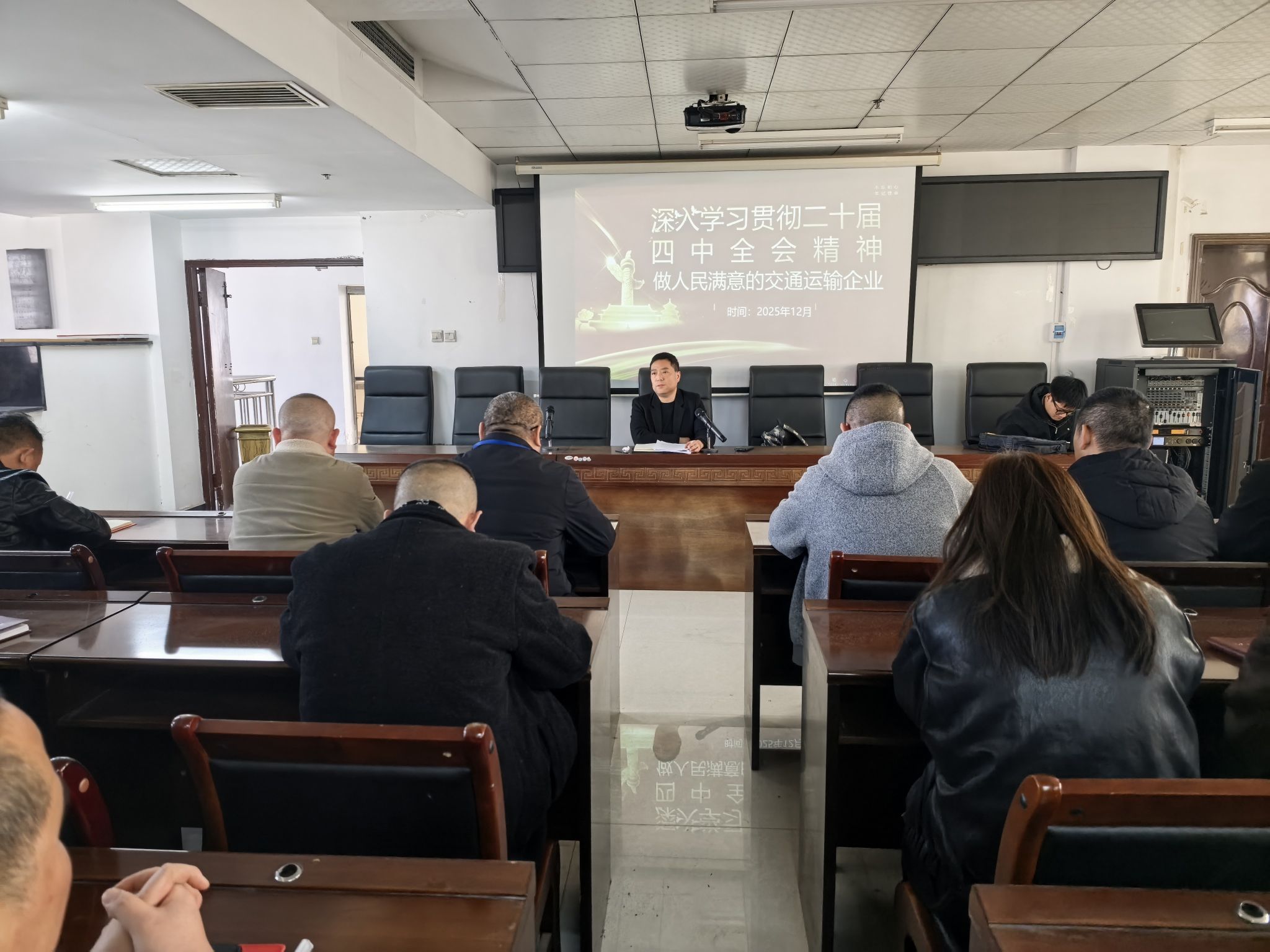 12月26日上午,集团公司党委委员、纪委书记曹剑雄莅临怀运集团沅陵分公司,以“做人民满意的交通运输企业”为主题,开展党的二十届四中全会精神专题宣讲。分公司领导班子、三级作业层正副职及分公司支部党员参加会议。 宣讲中,曹剑雄结合全会关于完善现代化综合交通运输体系的部署要求,强调“人民满意”是交通企业的根本宗旨,必须将安全发展理念贯穿运营管理全链条,以安全可靠、便捷高效的服务践行民生承诺,用高质量安全保障高质量发展。