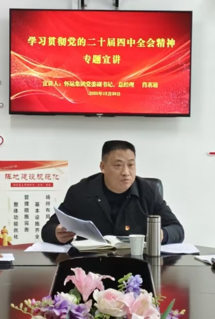 宣讲会上,肖茗崧围绕党的二十届四中全会准确把握“六个深刻领会”核心要义、深刻认识“十四五时期取得的重大成就、漆黑的深远意义、新发展阶段面临的形式变化、“十五五”发展的主题主线与目标任务以及坚持党的全面领导等展开系统解读,结合怀运集团新发展实际,剖析了全会精神在企业党建工作、企业经营、服务员工等方面的落实方向,明确了集团公司下一步工作深学细悟、筑牢安全、实干担当、精细管理降本增效等、形成共识凝心聚力推动党建与生产深度融合等,为公司高质量发展贡献力量。