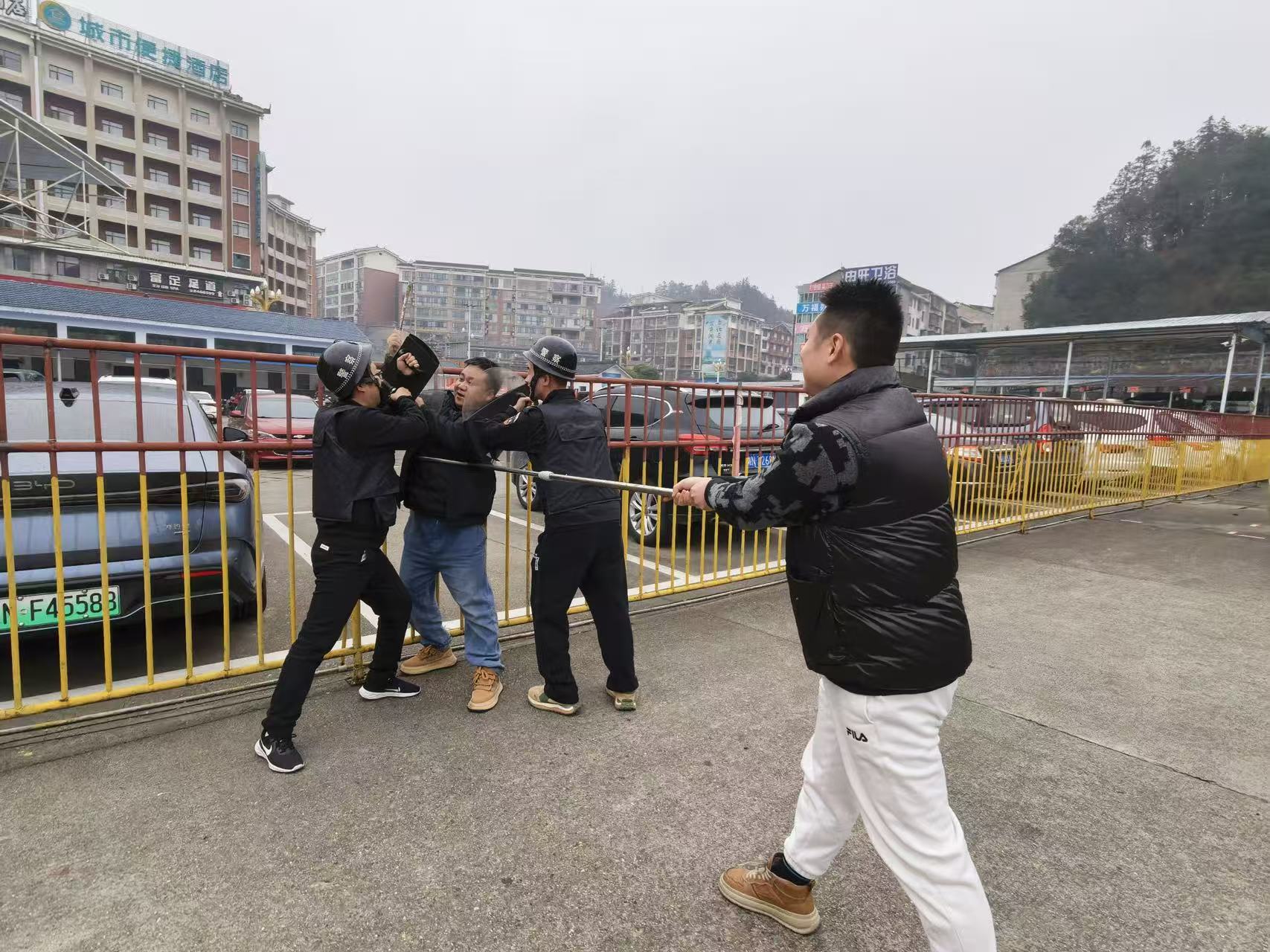 为进一步提升车站职工与公安干警应对各类恐怖袭击和暴力事件的快速反应、协同作战及应急处置能力,切实保障人民群众生命财产安全和汽车站站场秩序稳定,12月31日,通道汽车站组织职工联合县治安大队及巡特警在车站站场共同开展了一场贴近实战的反恐防爆演练。