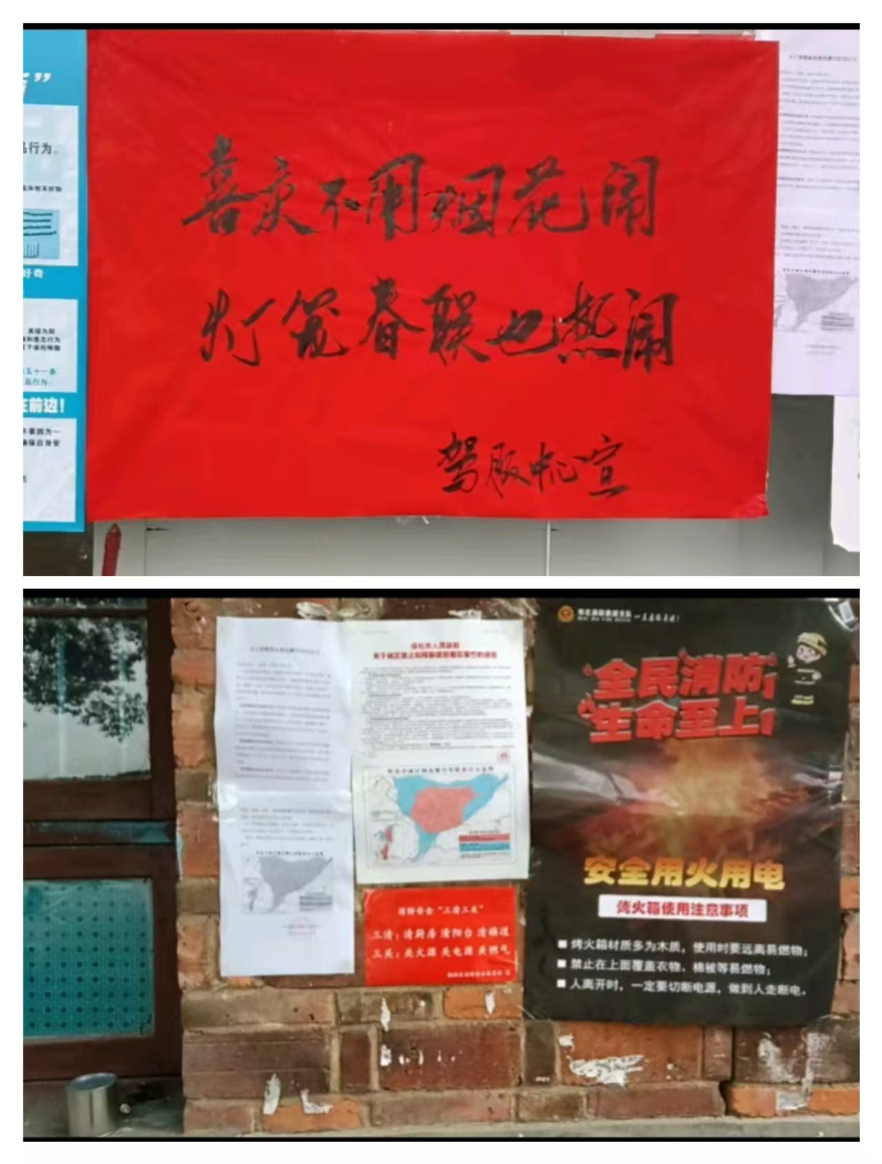 在宣传教育方面,驾服中心构建“线上+线下”立体矩阵,实现多点发力、全域覆盖,以 1 月 4 日芷江县罗旧镇木质居民房火灾本地案例为典型警示教材,组织人员入门入户开展面对面安全宣讲,针对性详解冬季用火用电用气风险及防控要点。同时,在办公区、家属区及租赁场地广泛设置宣传栏、张贴警示海报,并依托微信工作群、职工群等线上平台,持续滚动推送消防安全提示。宣传内容重点聚焦电动车违规停放充电、焚烧枯叶、私炕腊味等冬季高发隐患,着力从源头提升安全意识,引导规范行为,从源头遏制风险。