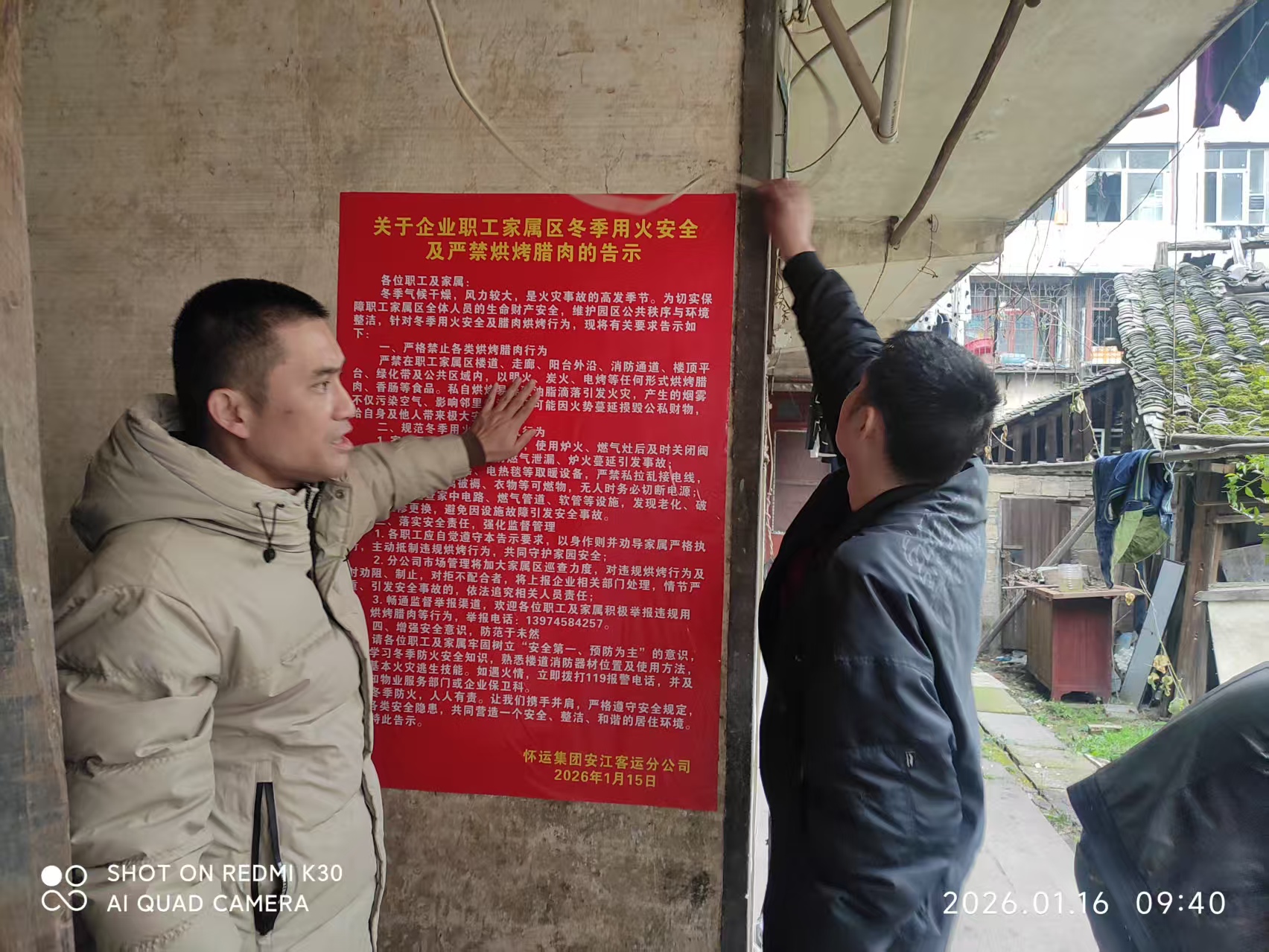 为切实防范冬季安全事故,保障群众生命财产安全,2026年1月16日上午,怀运集团安客分公司组织相关领导及安全管理人员,深入辖区市场及家属区开展专项安全排查与宣传活动,扎实推进“三清三关”落实与“五进”安全宣传工作。