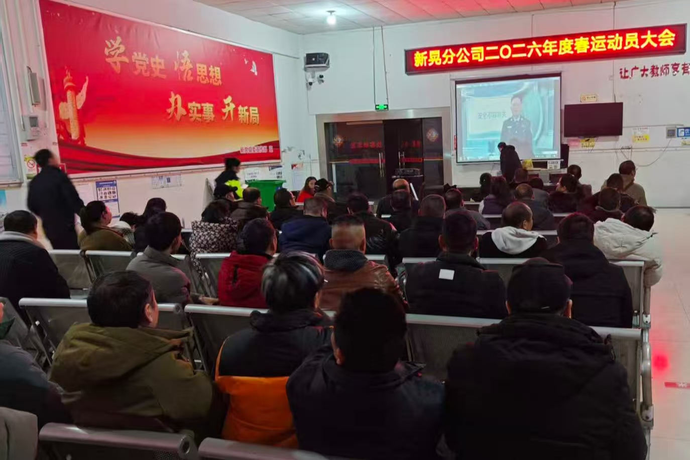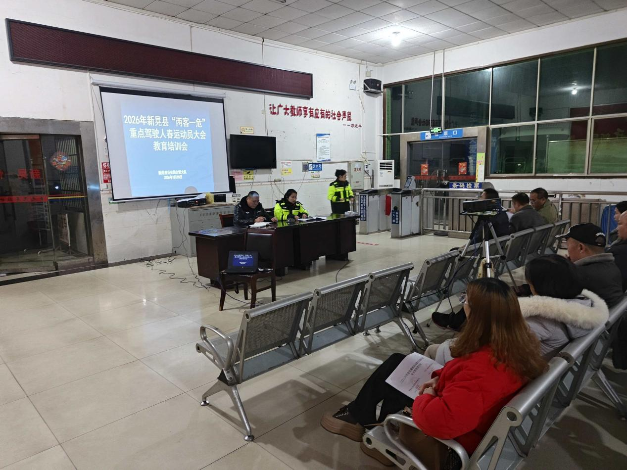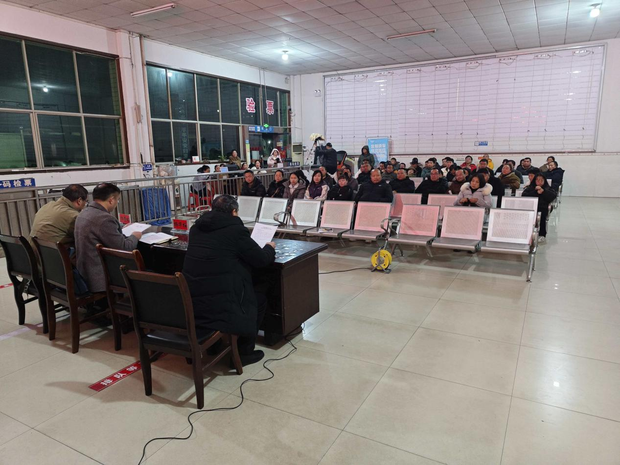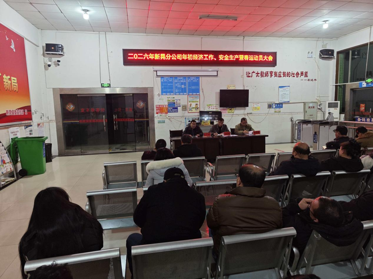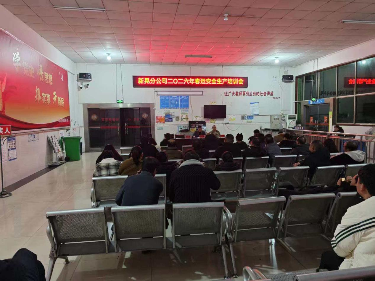 2026年1月30日晚上7点,新晃分公司在快巴候车室召开全司职工年初经济工作、安全生产培训暨春运工作动员大会。