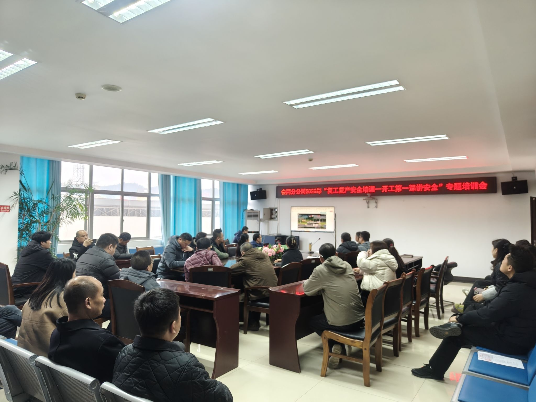 春节长假结束,迎来复工复产开工时期,为全面落实“先安全后生产、不安全不生产”硬性要求,2月25日上午,会同分公司组织全体员工召开2026年复工复产安全培训会,同步开展“开工第一课讲安全”活动 。