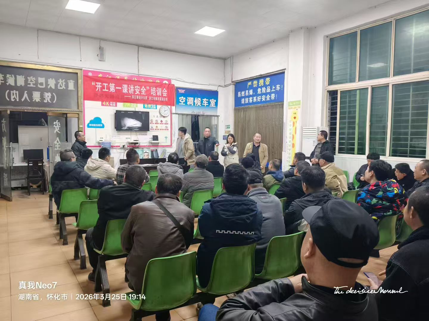 3 月25日晚7时,怀运集团安江客运分公司于安江汽车站快巴候车室组织全体员工及驾驶员开展汛期雨季行车培训暨安全例会学习,分公司经理尹华伟出席会议。